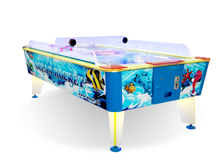 3、有球的一方将放上台面,用球柄大力撞击球,采用各种方法将球射入对方的大门,同时也要阻止对方将球射入自己的大门。游戏时,可通过撞击侧壁而改变球的方向,使对方防不胜防,也可直接大力的抽射,令对方难以招架。